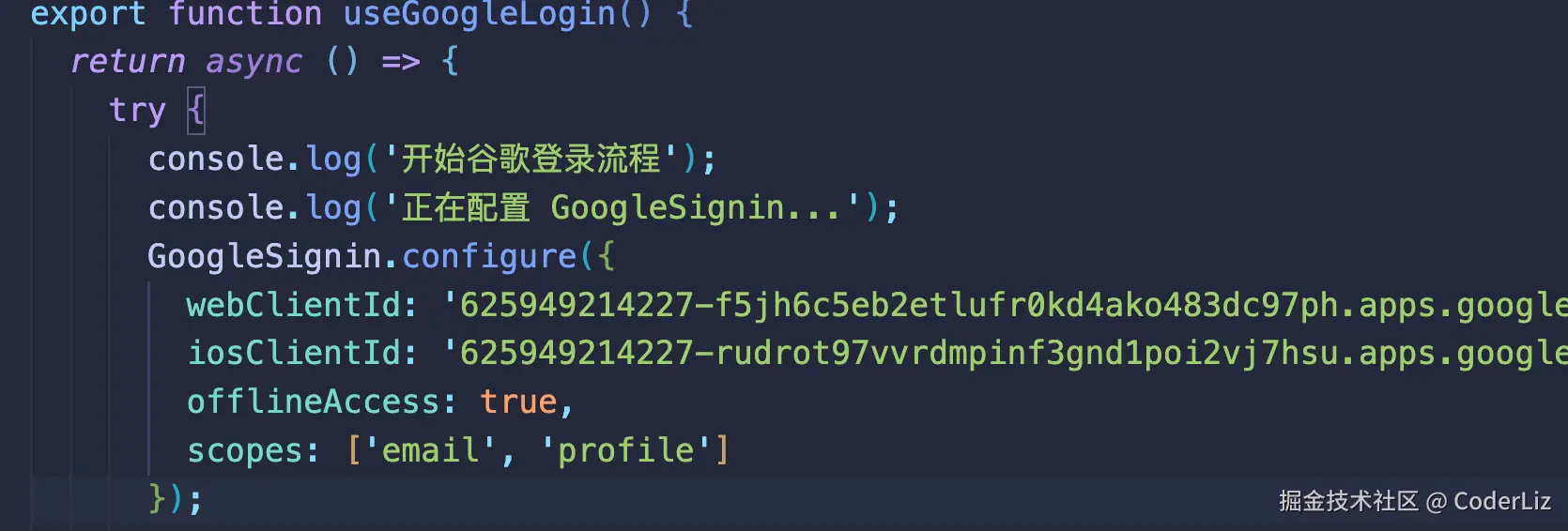 APP端的谷歌登录