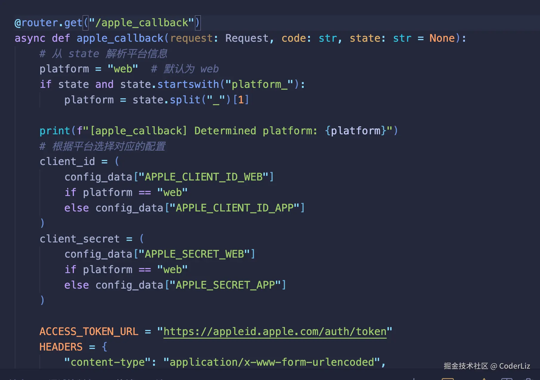 苹果的回调接口逻辑是拿着用户的授权码去请求用户数据,然后苹果会返回一个包含用户信息的加密令牌,然后我们使用秘钥解码 Apple 返回的 JWT