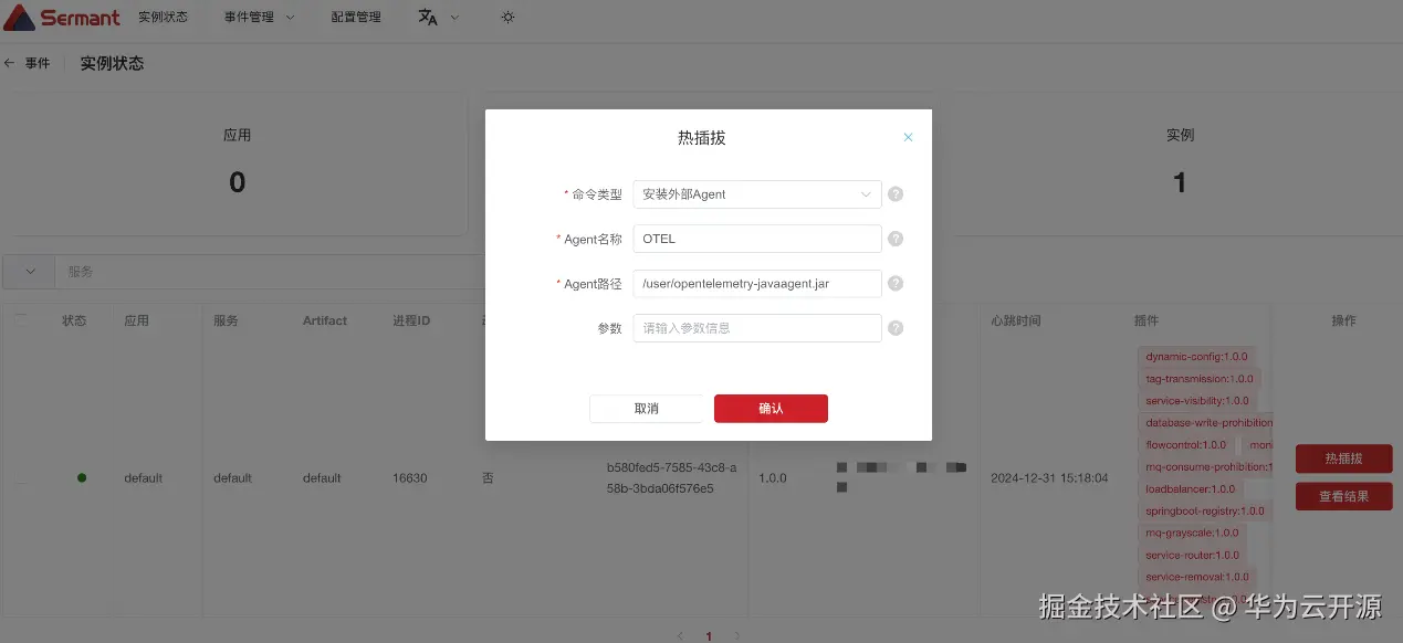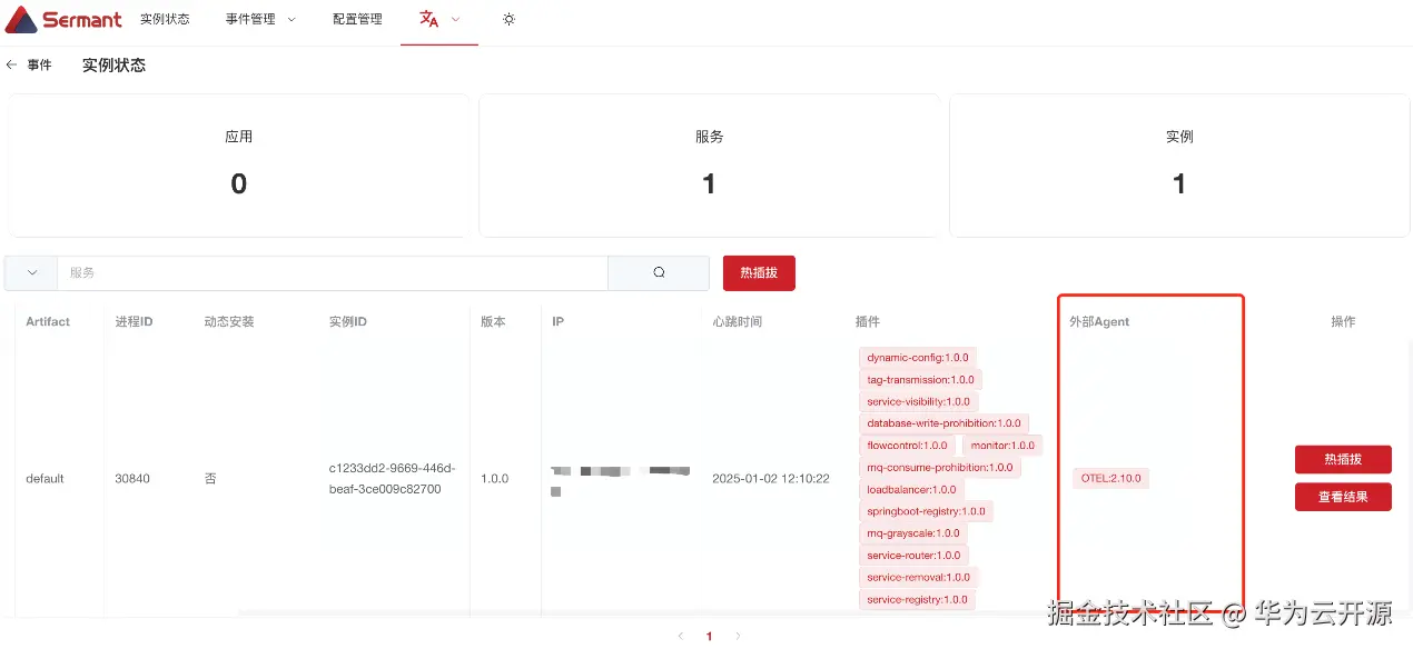 (2)支持在Sermant Agent中挂载外部Agent,并且可通过Sermant Backend统一管理和观测。其中对OpenTelemetry做了兼容性支持。