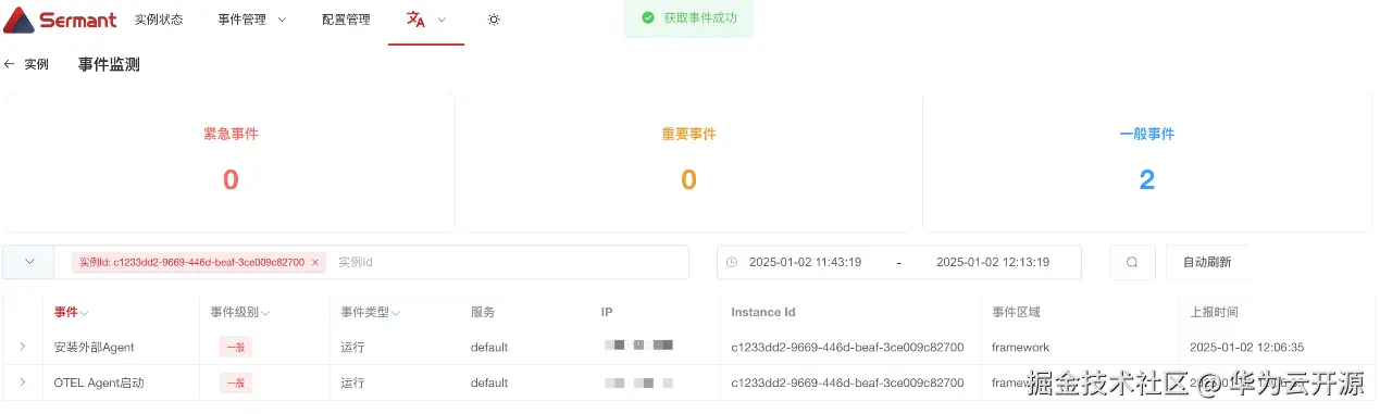 • 支持在事件管理标签页展示挂载外部Agent的具体事件信息。
