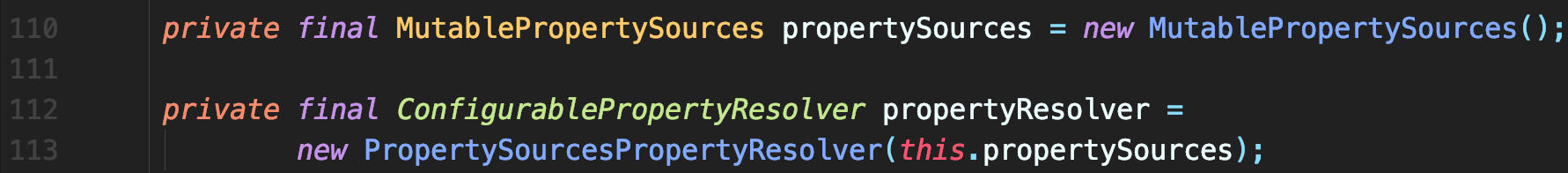 - 实例化PropertySourcesPropertyResolver时,传入了当前的MutablePropertySources