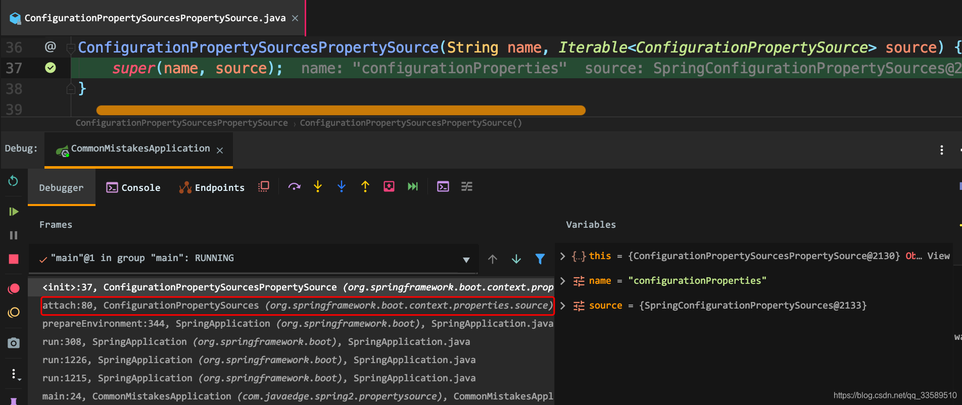 ConfigurationPropertySourcesPropertySource实例化时