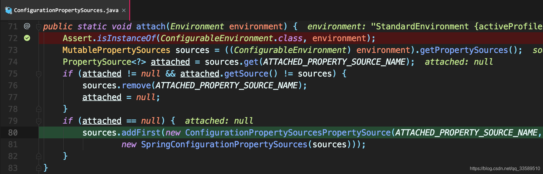 ConfigurationPropertySourcesPropertySource是在ConfigurationPropertySources#attach中被 new 出来的。