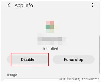 步骤 6. 如果您无法卸载它,您可以禁用该应用程序。点击“禁用”可停止应用程序在后台运行,防止其更新,并节省存储空间。