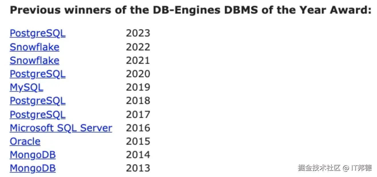 PostgreSQL四次登顶!PostgreSQL蝉联DB-Engines“年度数据库”称号!