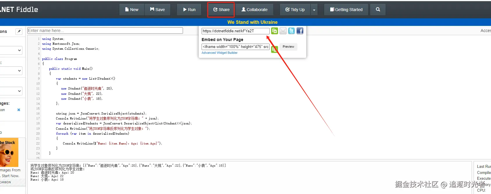 - 上面示例代码的分享链接:dotnetfiddle.net/kFYa2T