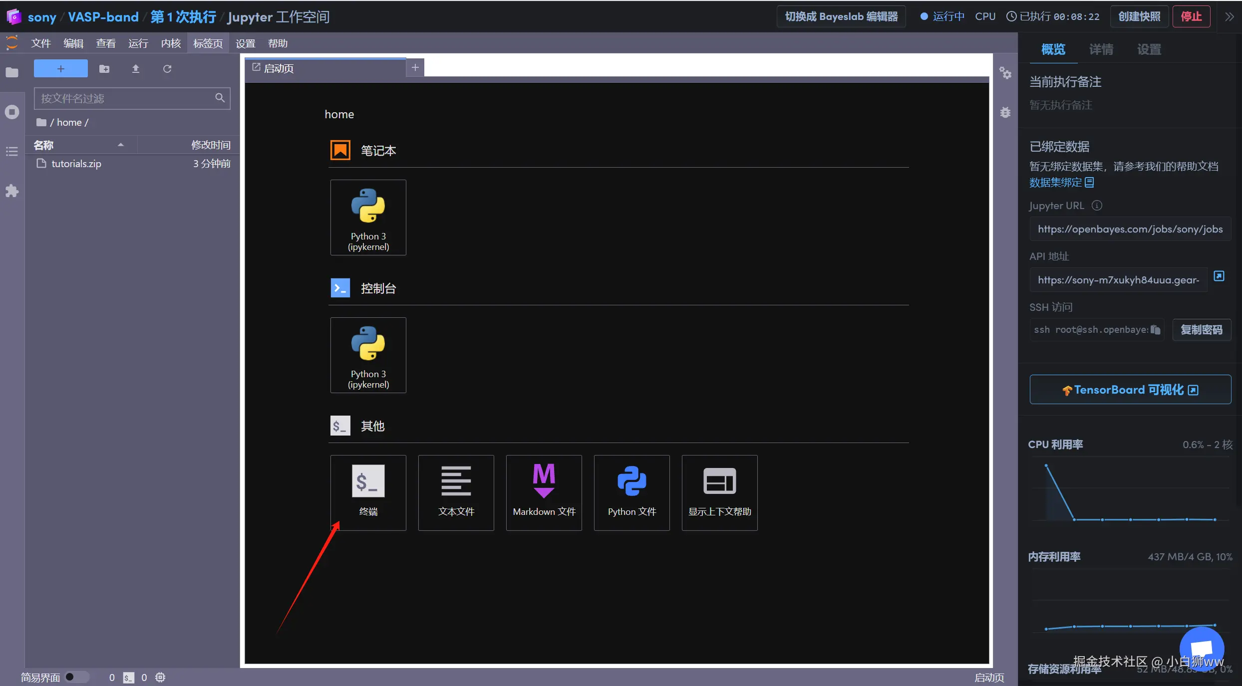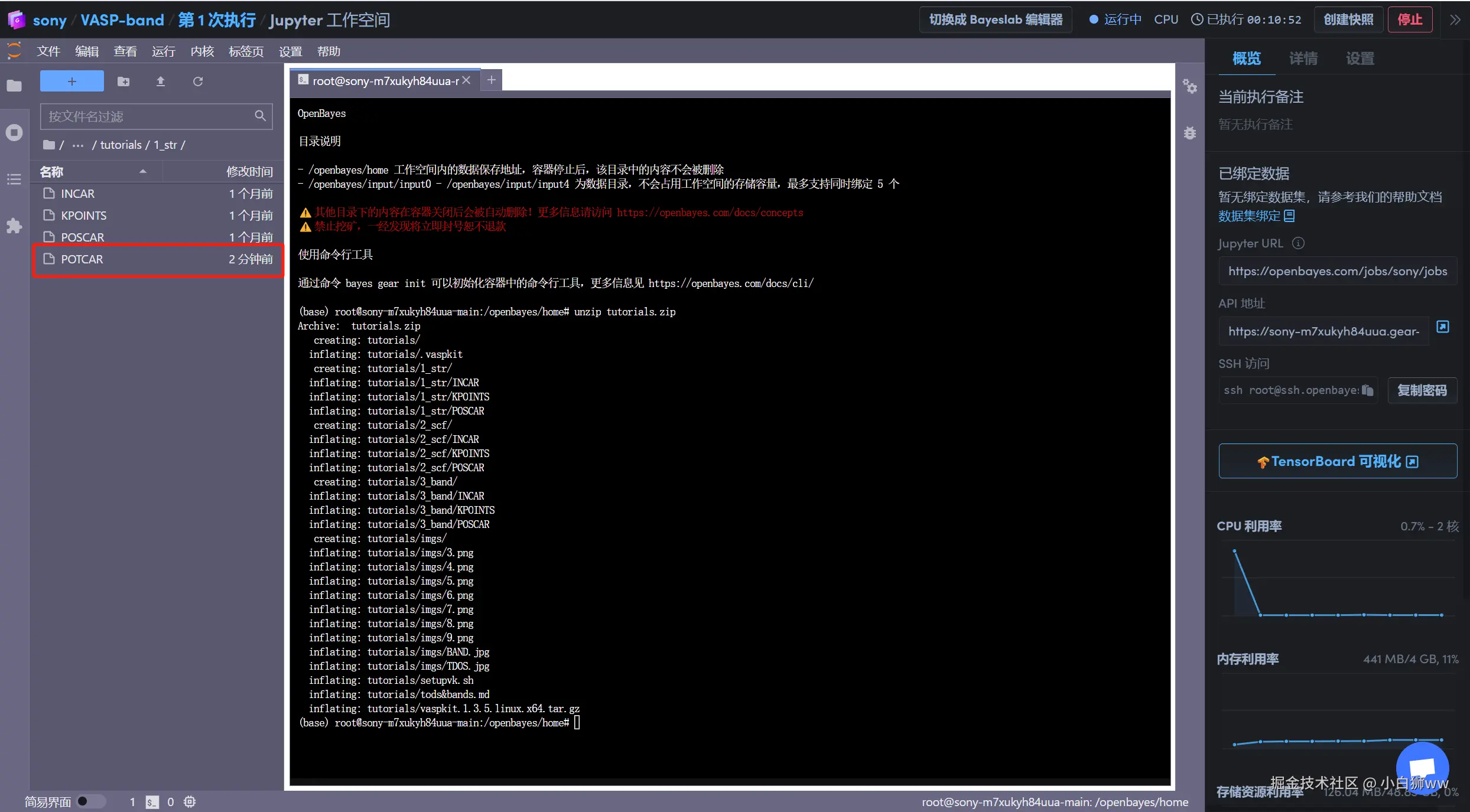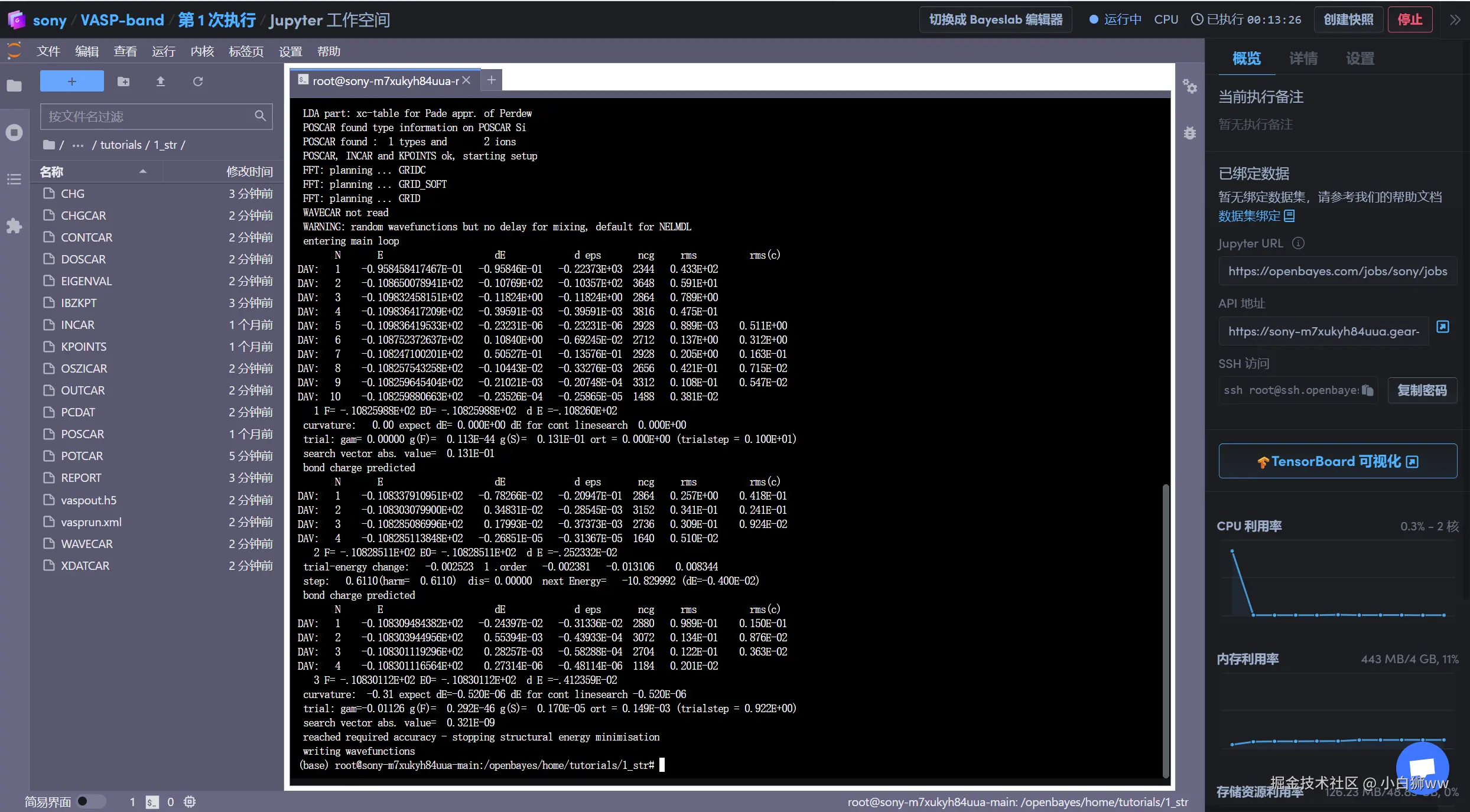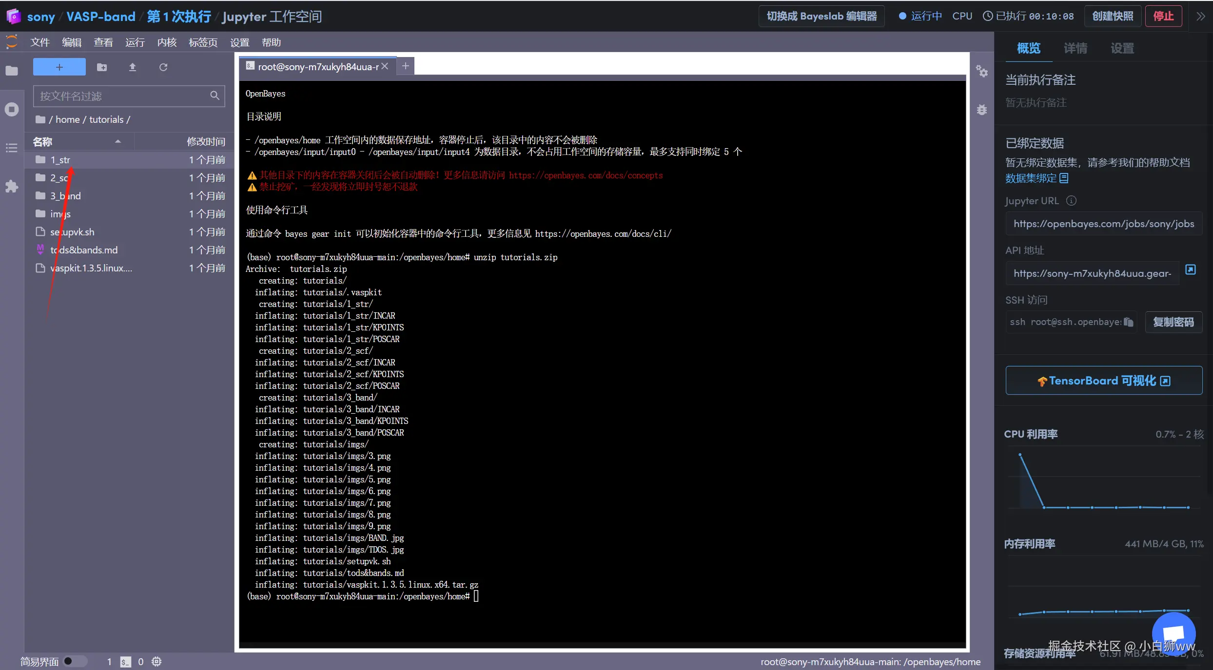 - 登录 OpenBayes.com,在「公共教程」页面,选择「VASP 入门教程:计算硅的态密度和能带」教程。
