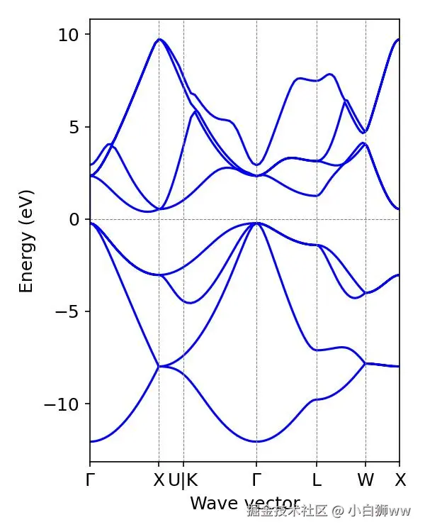 cd ..」返回目录,输入「cd 3_band」进入「3_band」目录,运行以下代码得到硅的能带图。