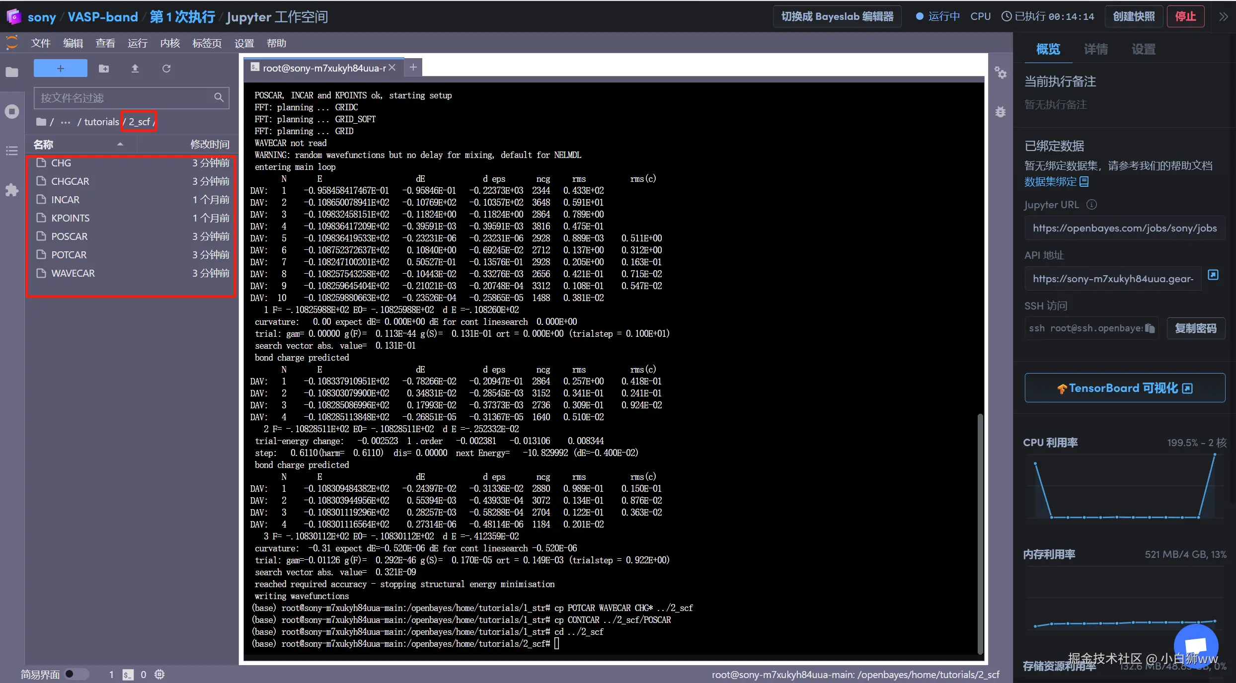 之后可输入「cd ../2_scf」进入「2_scf」目录进行查看。