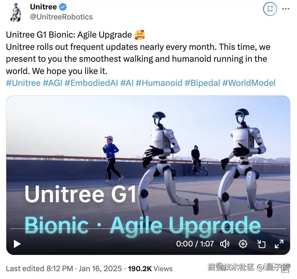 但这次的视频看下来,G1 步态确实比之前流畅很多,也更像人的行走姿态了。