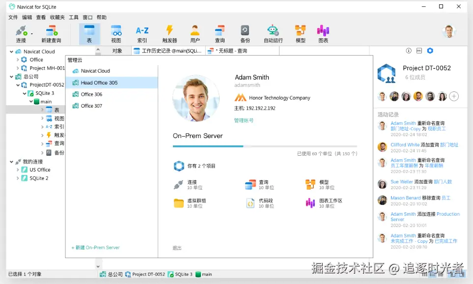 Navicat for SQLite 是一个强大而全面的、跨平台的 SQLite 图形用户界面、是一个需要付费的管理工具,它提供了一套完整的数据库管理和开发功能。优化你的 SQLite 工作流程和生产力-你可以快速、安全地创建、组织、访问和共享信息。