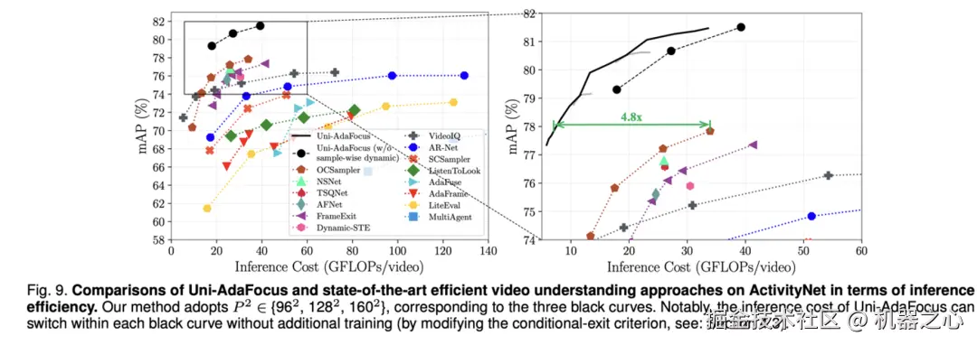 关于 Uni-AdaFocus 模型设计和训练方法的更多细节,由于比较繁杂,可以移步参阅论文。