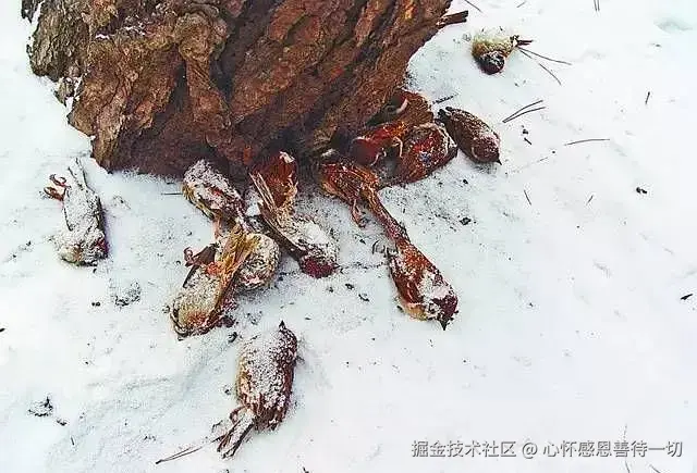 北京有一年春节前大批喜鹊死亡。原因就是那年很多杜梨、紫叶小蘖等浆果类植物,被砍掉做图章料,导致鸟儿冬天无处觅食而死。