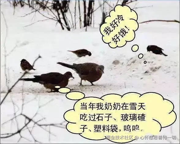 近几年随着街道整治清理的推进, 鸟类觅食越来越艰难。 很多当年出生的新鸟和体弱的老鸟,近几年,包括大量健康的成年鸟类都会冻死、饿死。