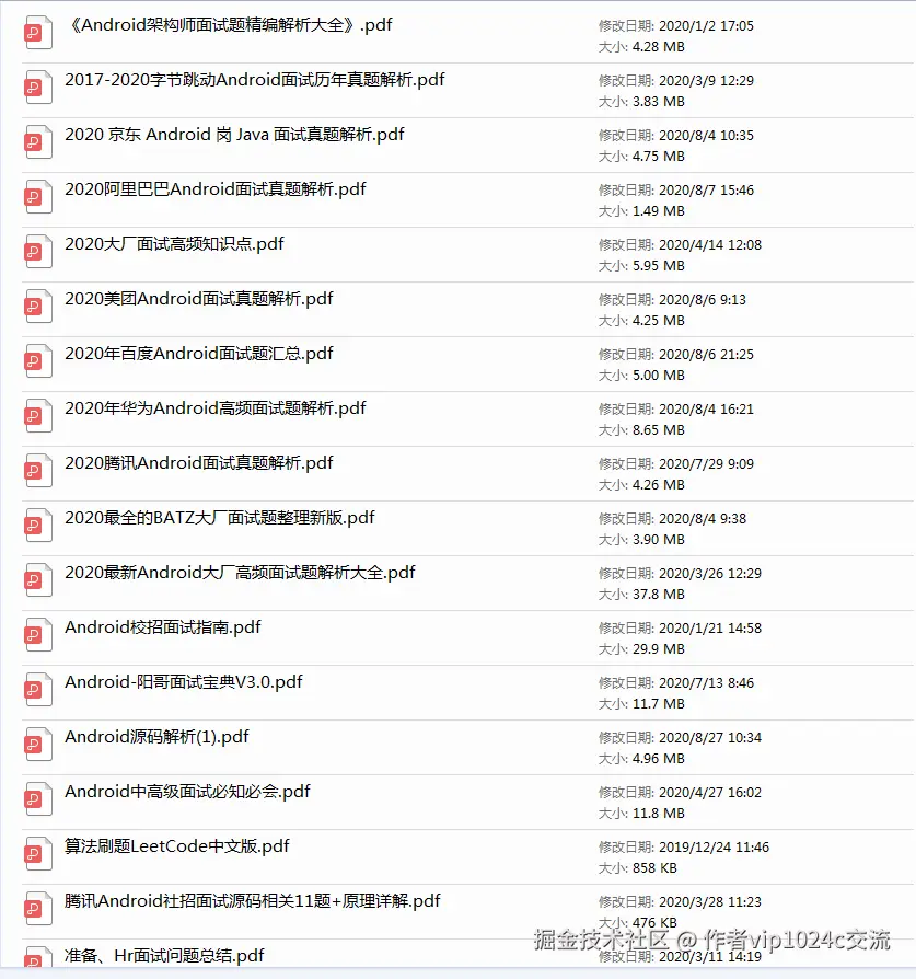 ①「Android面试真题解析大全」PDF完整高清版+②「Android面试知识体系」学习思维导图压缩包——————可以点击我的【腾讯文档】免费下载,最后觉得有帮助、有需要的朋友可以点个赞