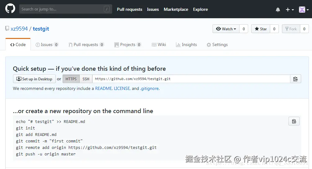 git remote add origin github.com/xz9594/test… 关联一个远程库