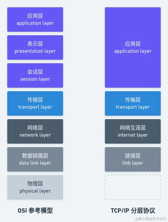 我们回顾一下 TCP/IP 分层模型 和 OSI 参考模型 。