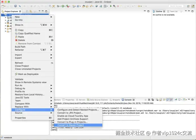 转换为Maven项目。右击项目,选择Configure -> Convert to Maven Project。