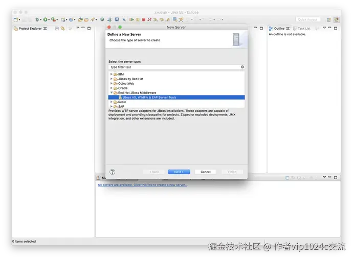 在Red Hat JBoss Middleware下选择JBoss AS, WildFly & EAP Server Tools 来下载JBoss Server适配器。