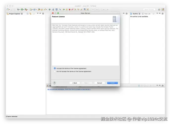 选择下方Servers选项卡, 点击: No servers are available. Click this link to create a new server…