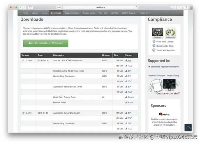 从wildfly.org/downloads/下… final, 选择Java EE7 Full & Web Distribution版本。下载完成后解压缩。