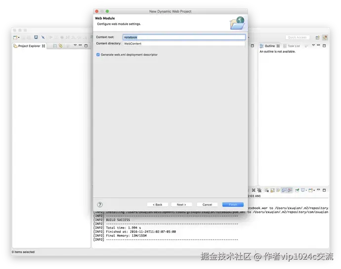 勾选Generate web.xml deployment descriptor,稍后会在里边配置JSF Servlet点击Finish.