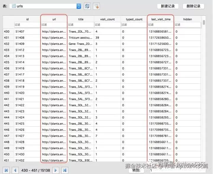 (1) 首先我们用DB Browser for SQLite来看下History中的urls表的数据组成