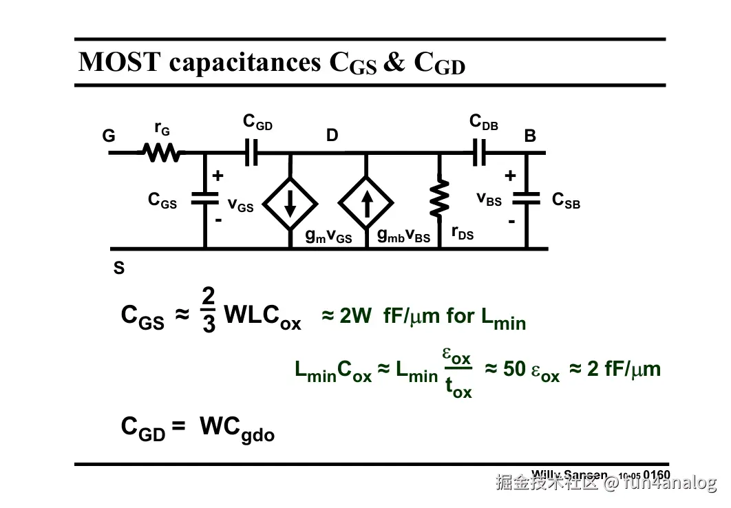 MOS管的Cgs和Cgd估算. L取最小, 大致按照Cgs=2*W