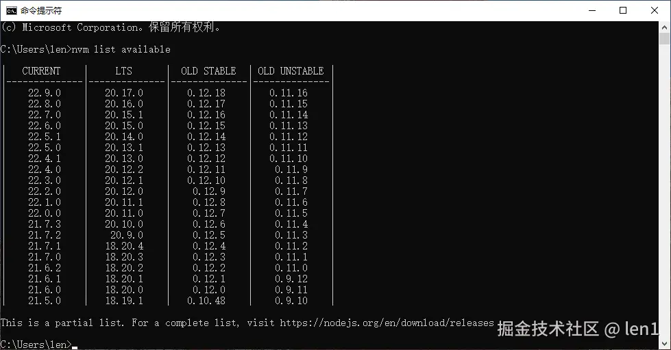 1.nvm list available(查看可安装的版本)