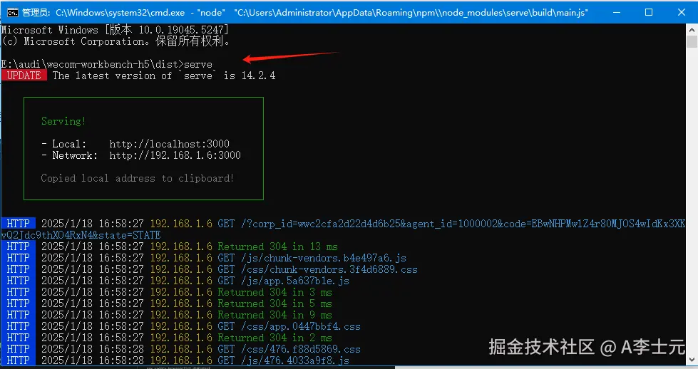 2,然后,本地serve运行刚打好的包