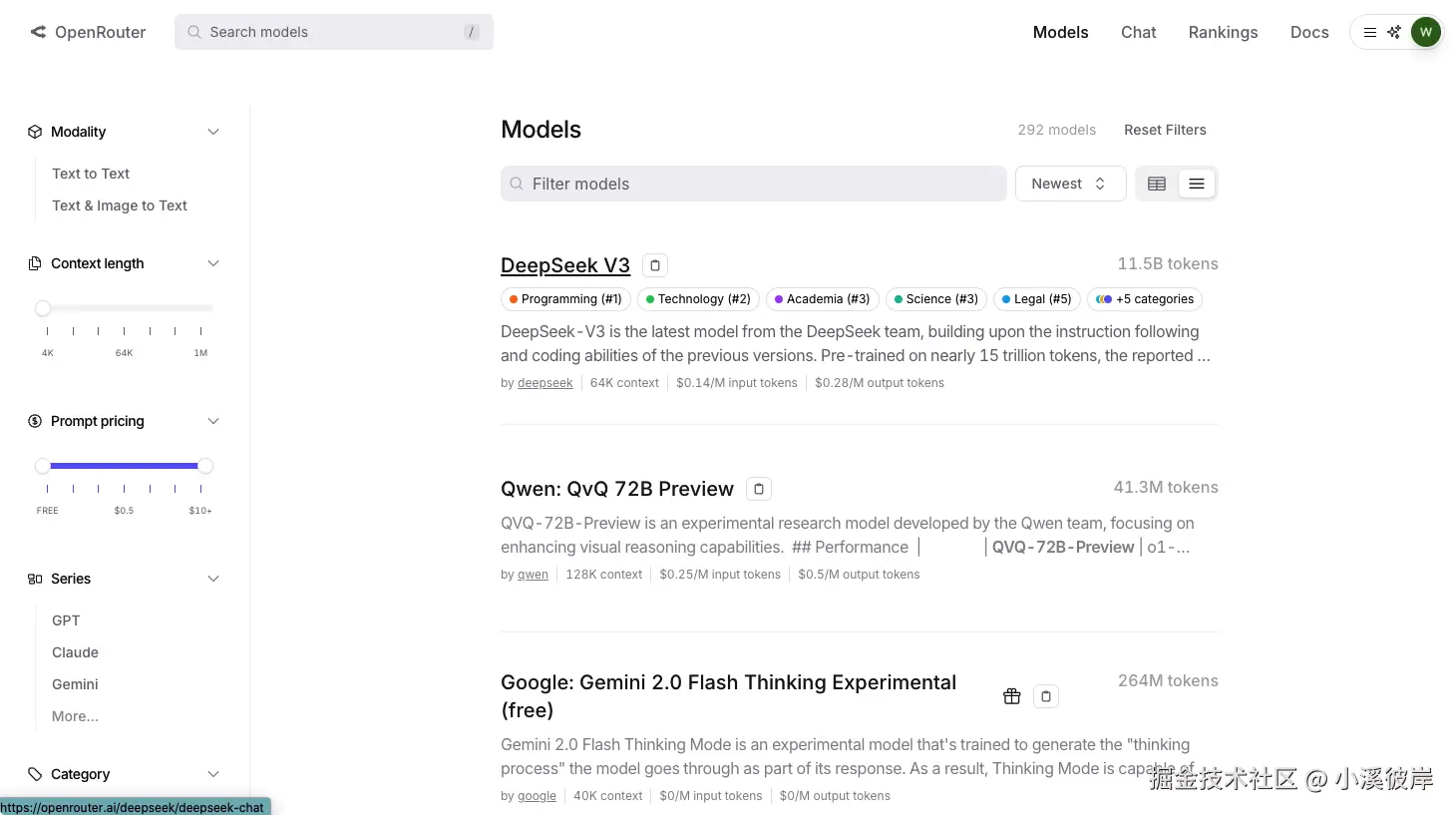 OpenRouter已支持模型列表,提供筛选、查看详情的入口