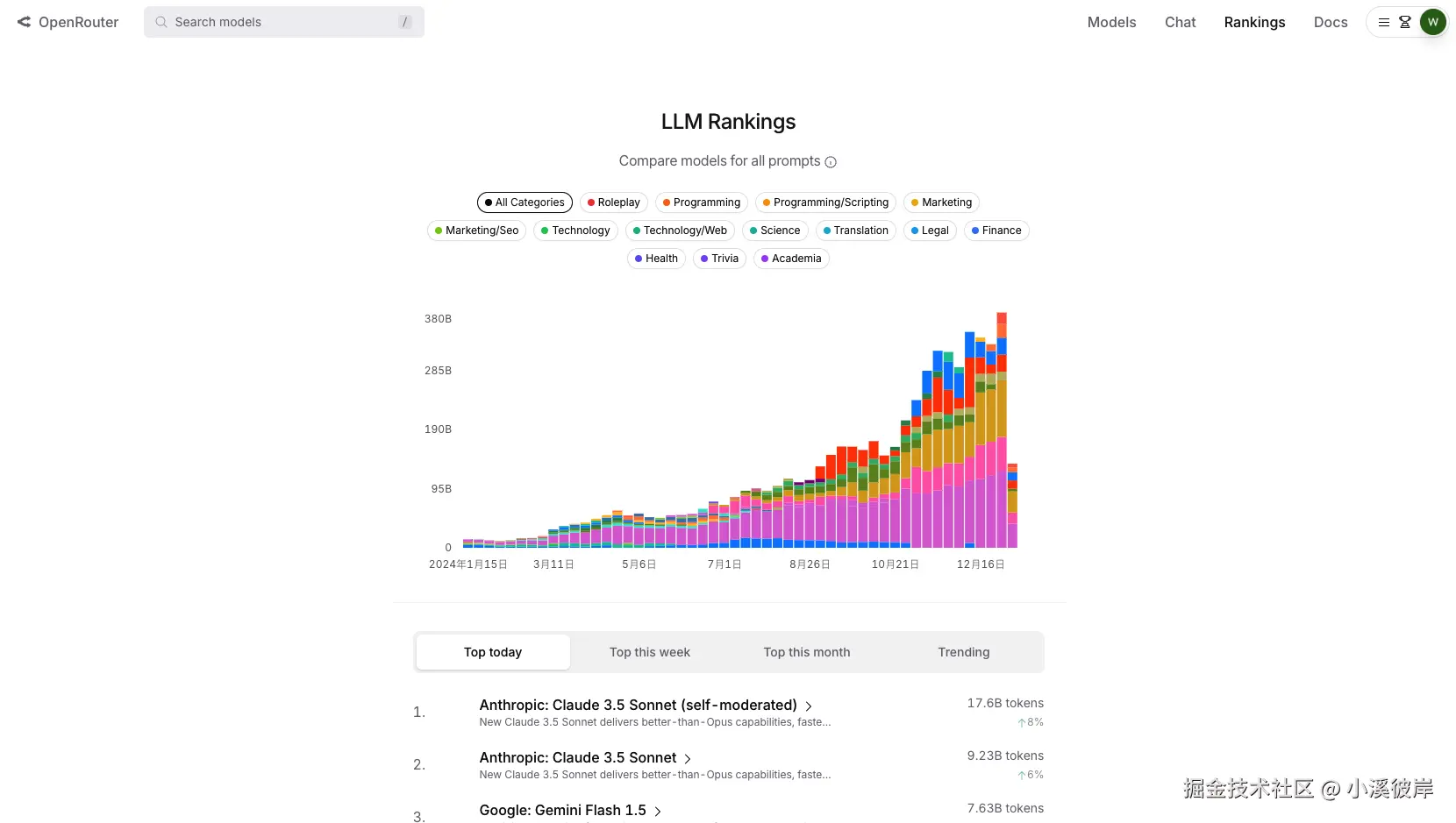 每10分钟更新一次,各个大模型提示词和token汇总排行
