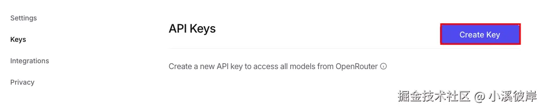 点击【Create Key】创建一个新的API Key