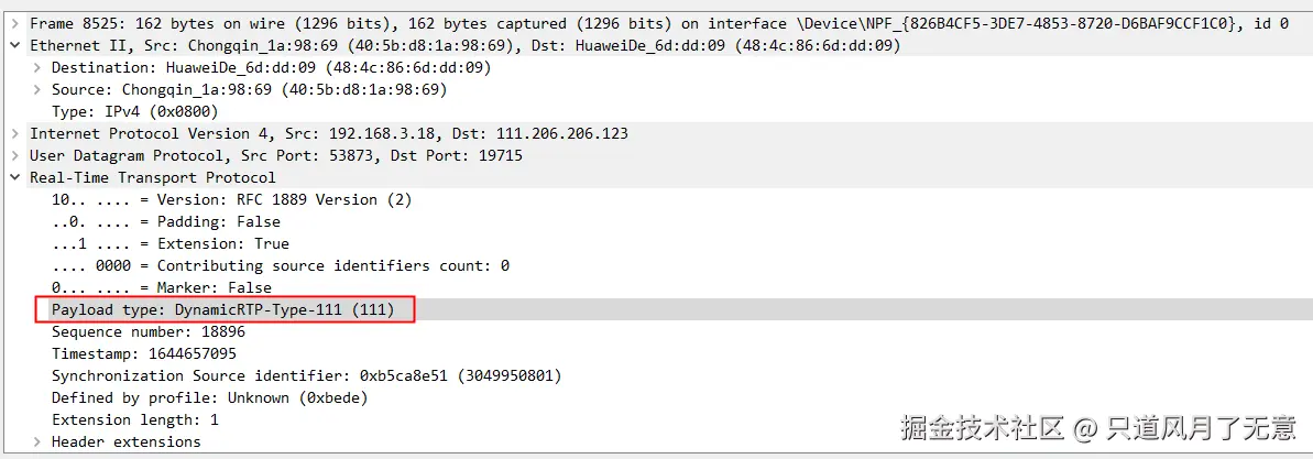 可以根据网络包的 Payload Type 类型进行条件过滤,比如根据下图中的 111 枚举值过滤。