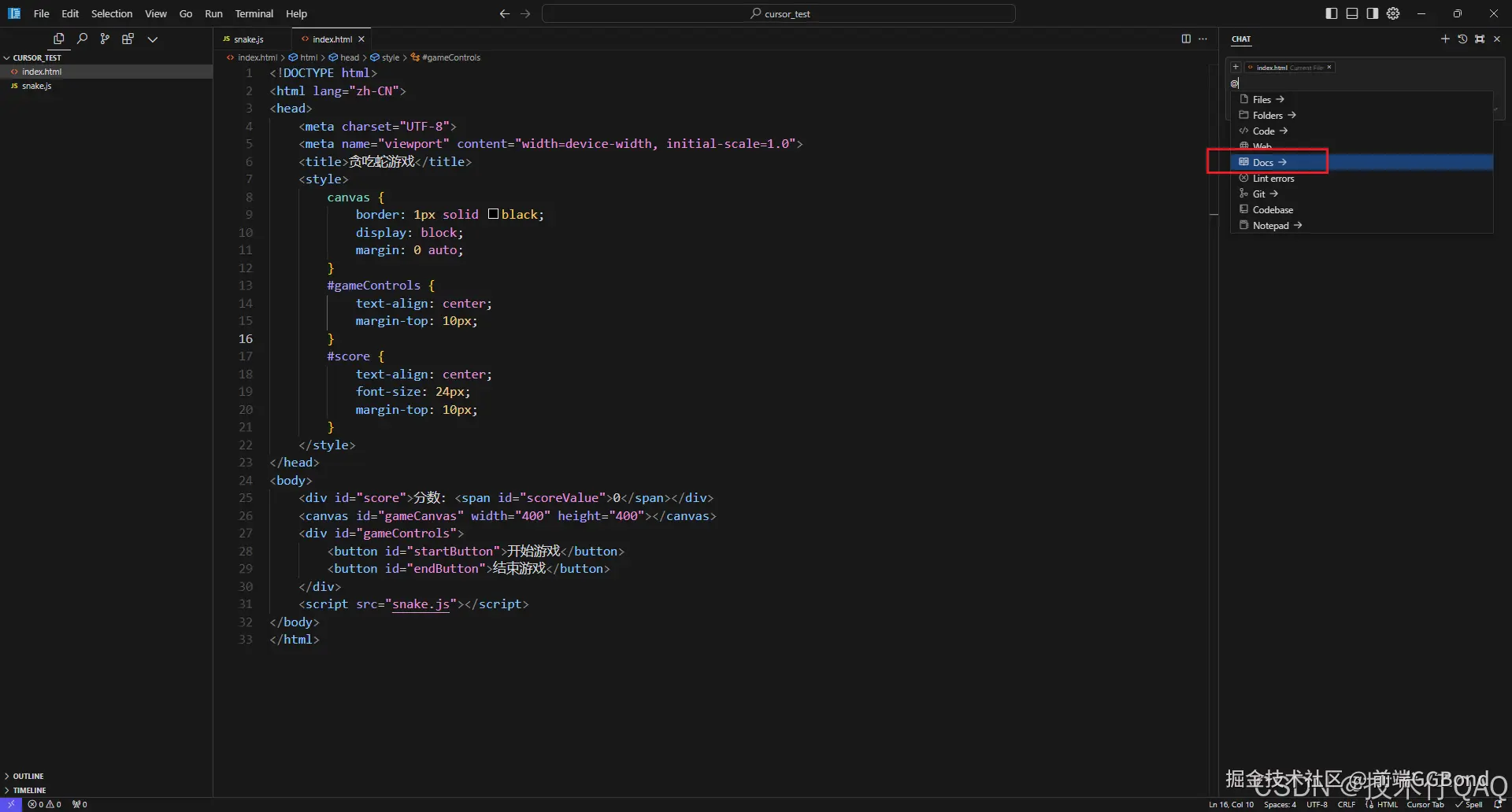 加入文档之后,使用文档进行提问的方式和单个文件一样,使用Ctrl+L唤起对话框,然后输入@,点击docs选择添加好的文档即可。