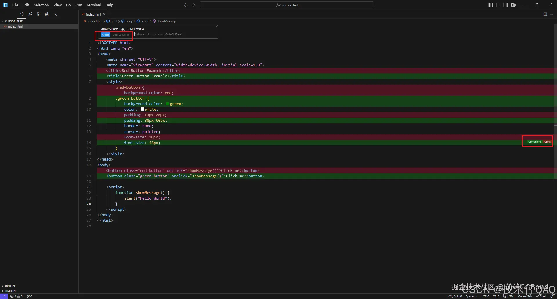 首先介绍Tab快捷键的使用,如果cursor补全代码,使用Tab键接受即可。