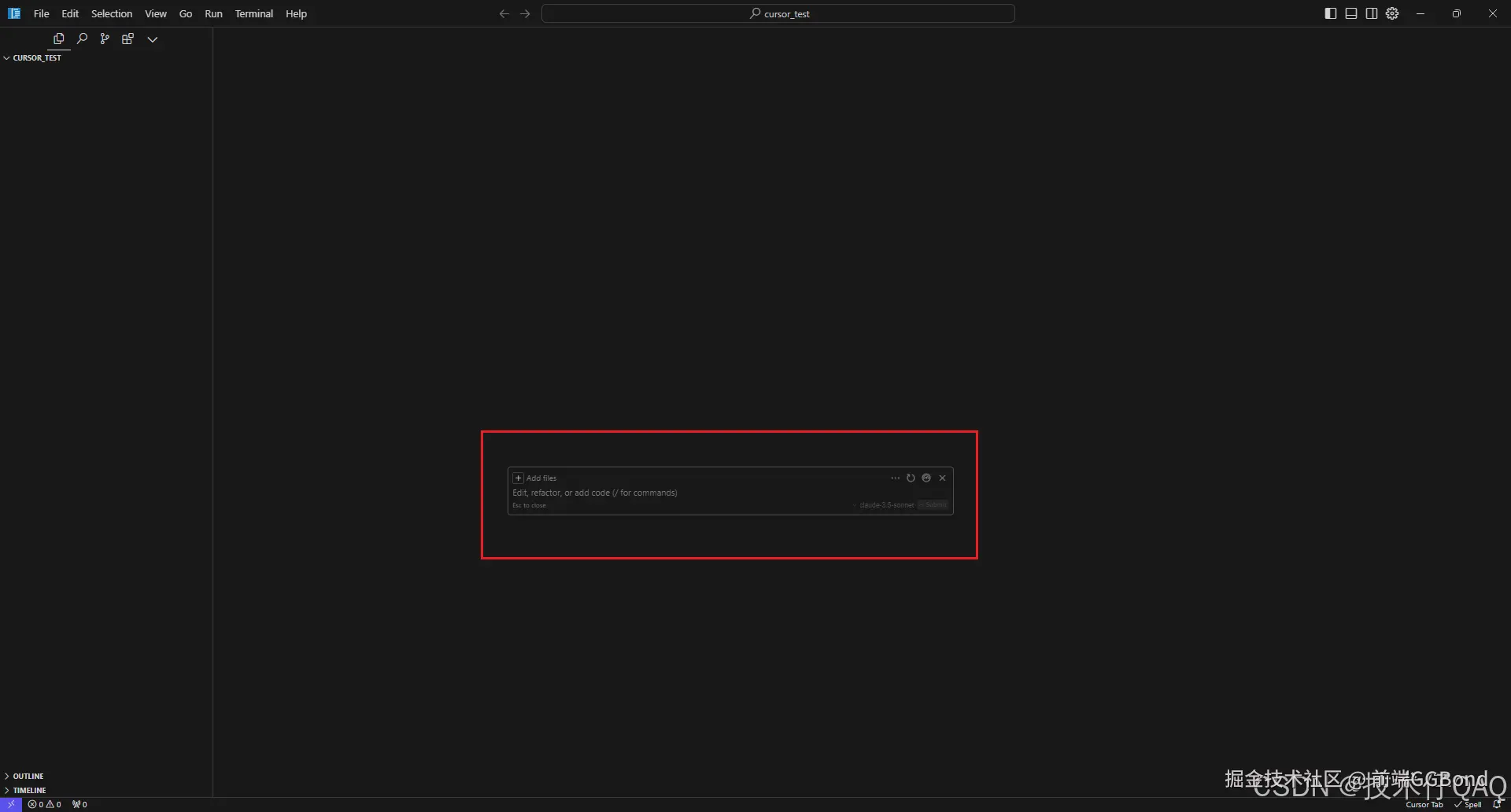 我是准备了一个空白项目,随意点击一块空白区域,按下Ctrl+i来唤起聊天框开始进行多轮对话。