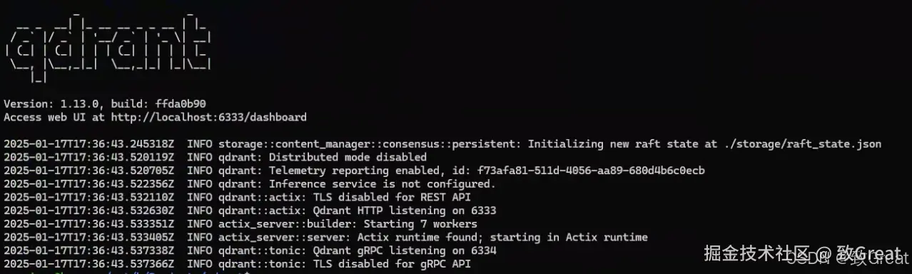 6333端口映射到容器的6333端口,以便通过宿主机访问 Qdrant 服务。 - 容器在后台运行,不会占用当前终端。