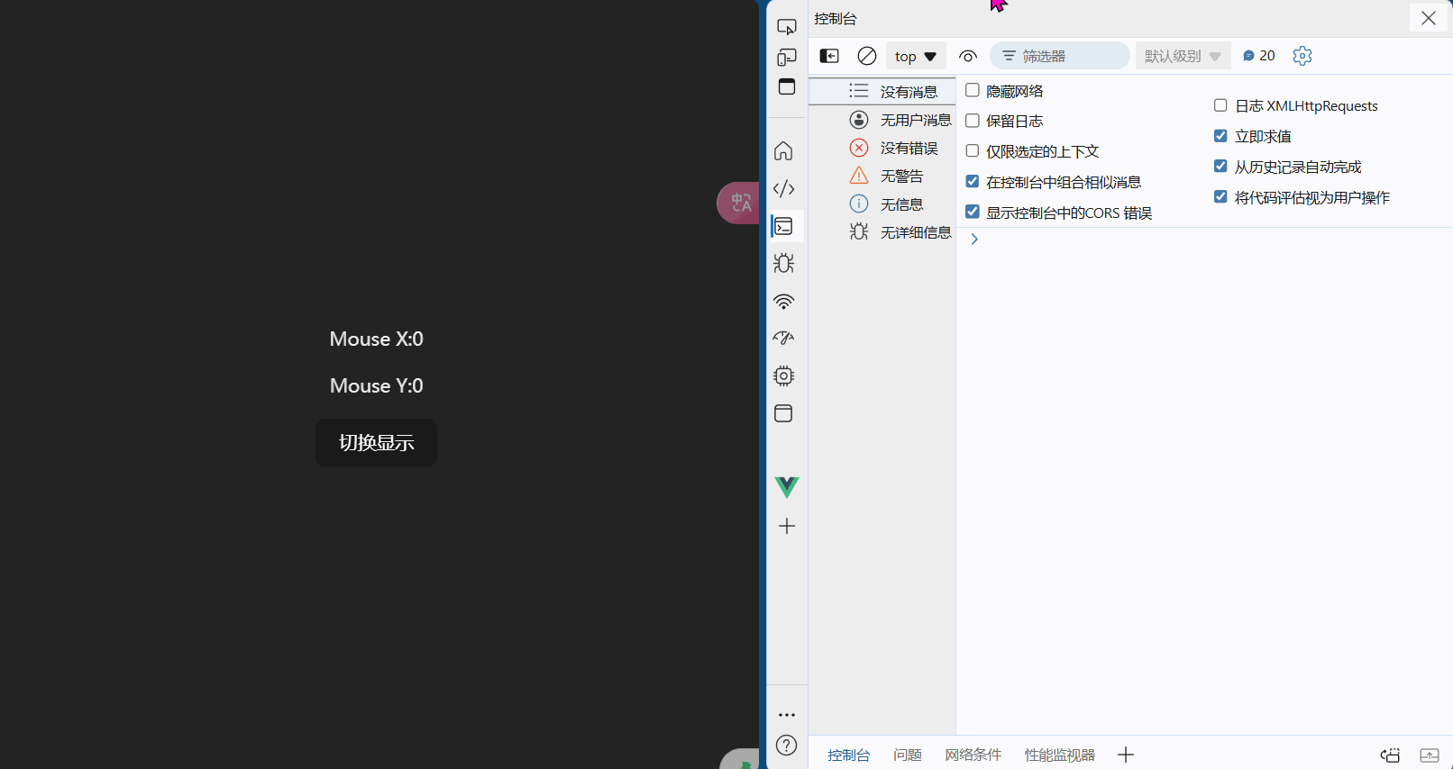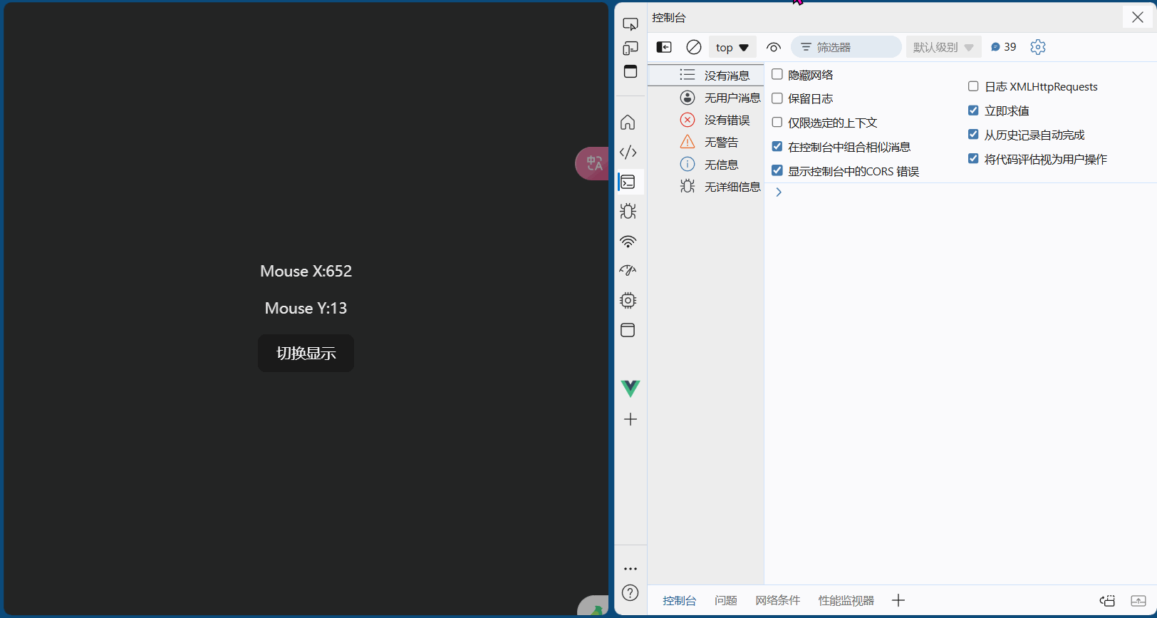 我们将还有生命周期 和 响应式代码封装为 useMouse , 作为模块导出 , 从而实现 UI 与 State 分离 , 嚓 , 这是不是很 react , react 框架本身专注于视图 , 也是实现了业务与视图的分离 , 所以很适合大型项目