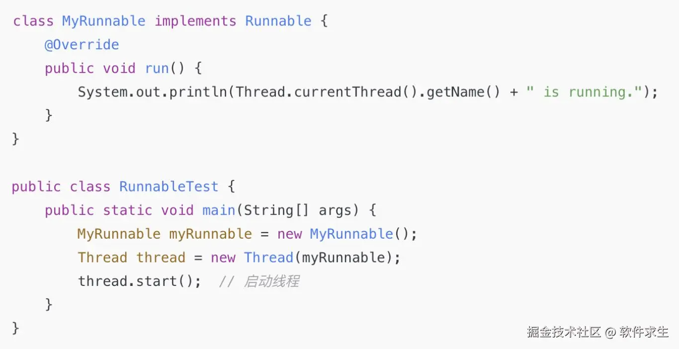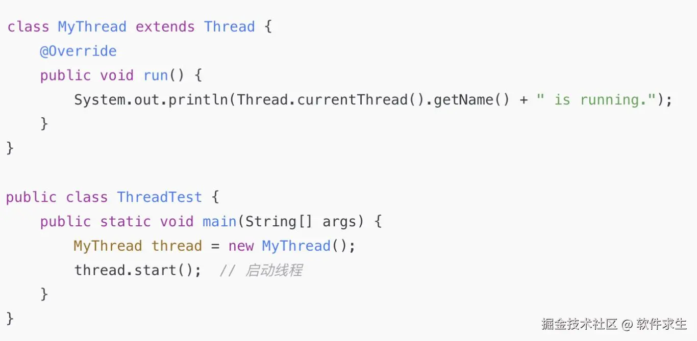- 无需额外创建接口或类,继承并重写 run() 方法即可。