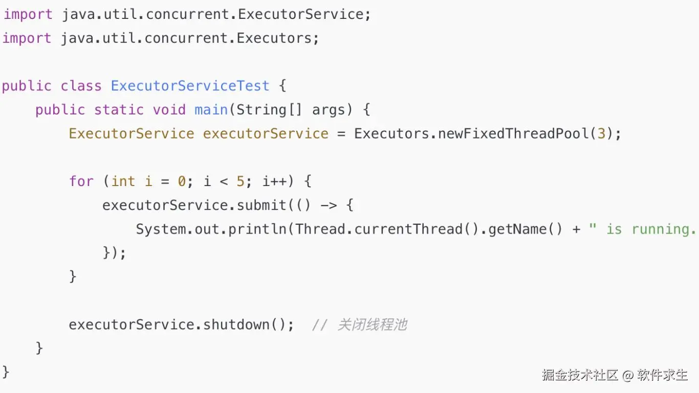 ExecutorService 是 Java 提供的一个常用接口,配合 Executors 工厂类,可以轻松创建并管理线程池。