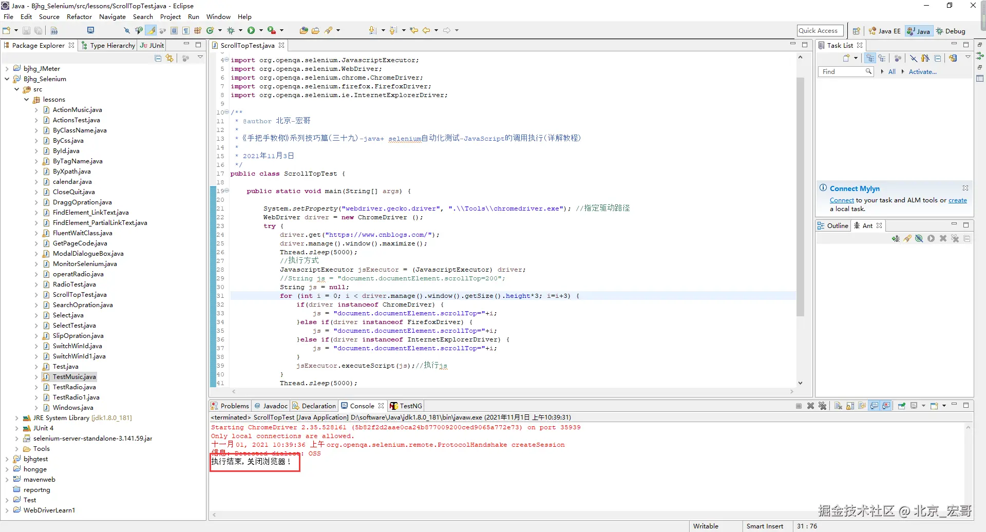 System.out.println("执行结束,关闭浏览器!");