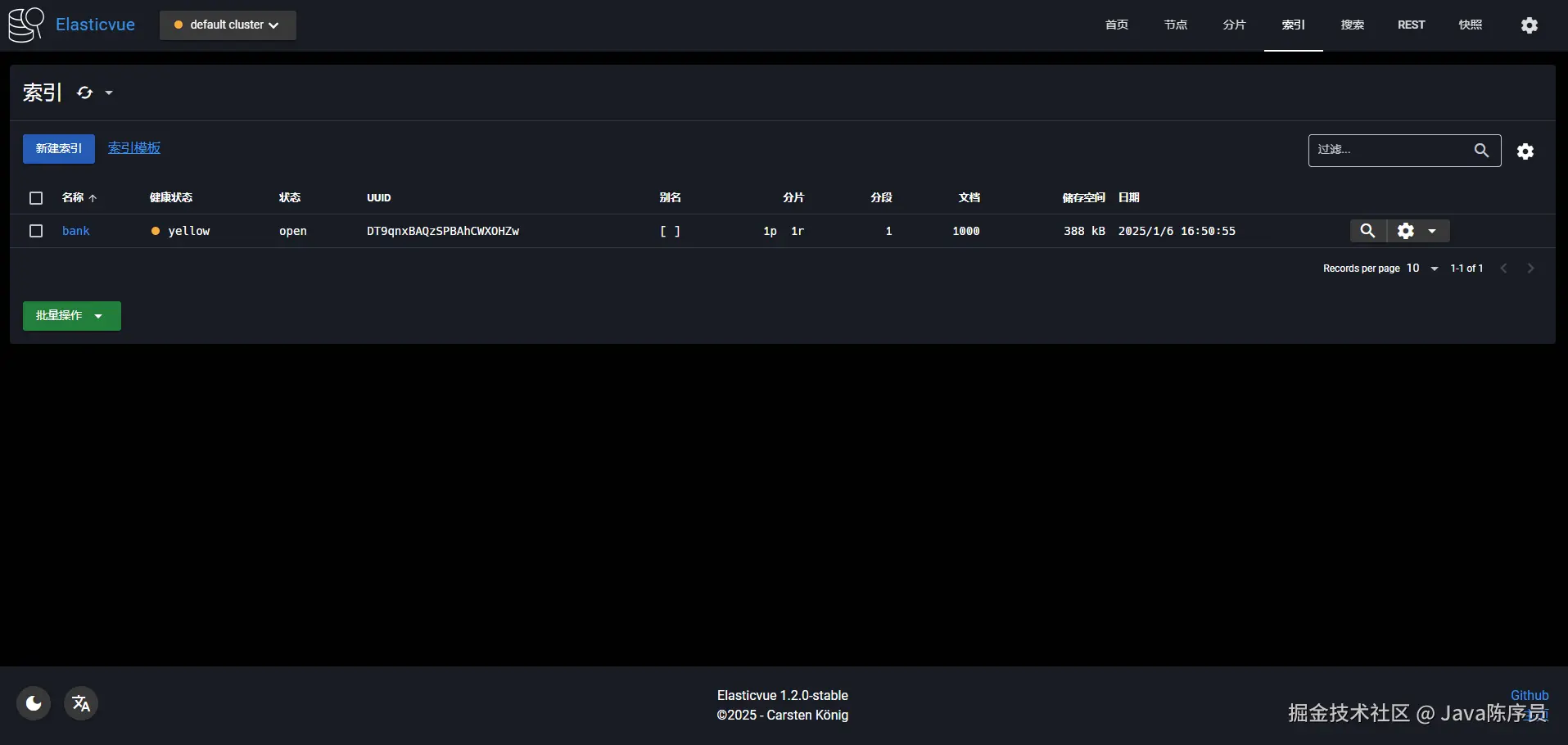 Elasticvue 涵盖了大部分常用的 ES 操作功能,而且很轻量,可以说完美替代了 Kibana, 感兴趣的小伙伴下次可以尝试体验下~