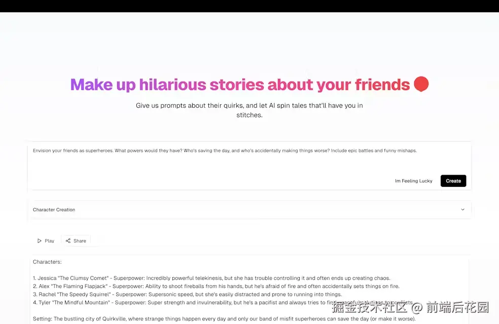 介绍:为你的朋友编造搞笑故事 🤪。告诉我们他们的特点,让 AI 为你编织令人捧腹的故事。
