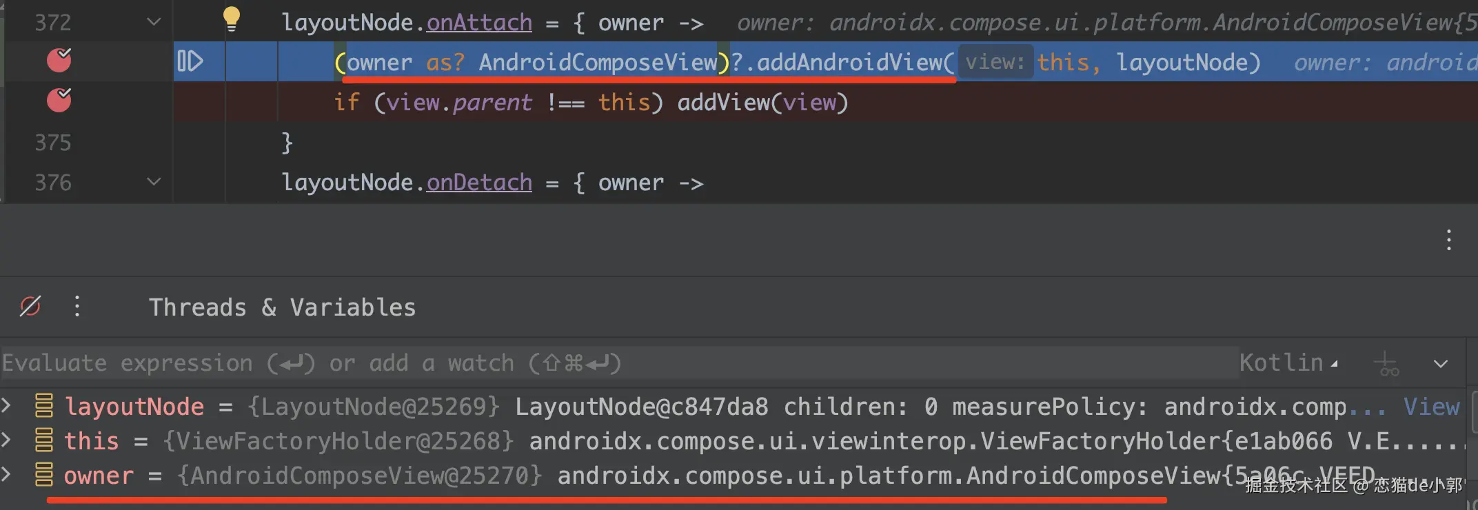 TextView,在AndroidView内部实际上就是被添加到AndroidViewHolder这个ViewGroup里 ,而且这里还有一个Owner,从命名上也很“关键”。