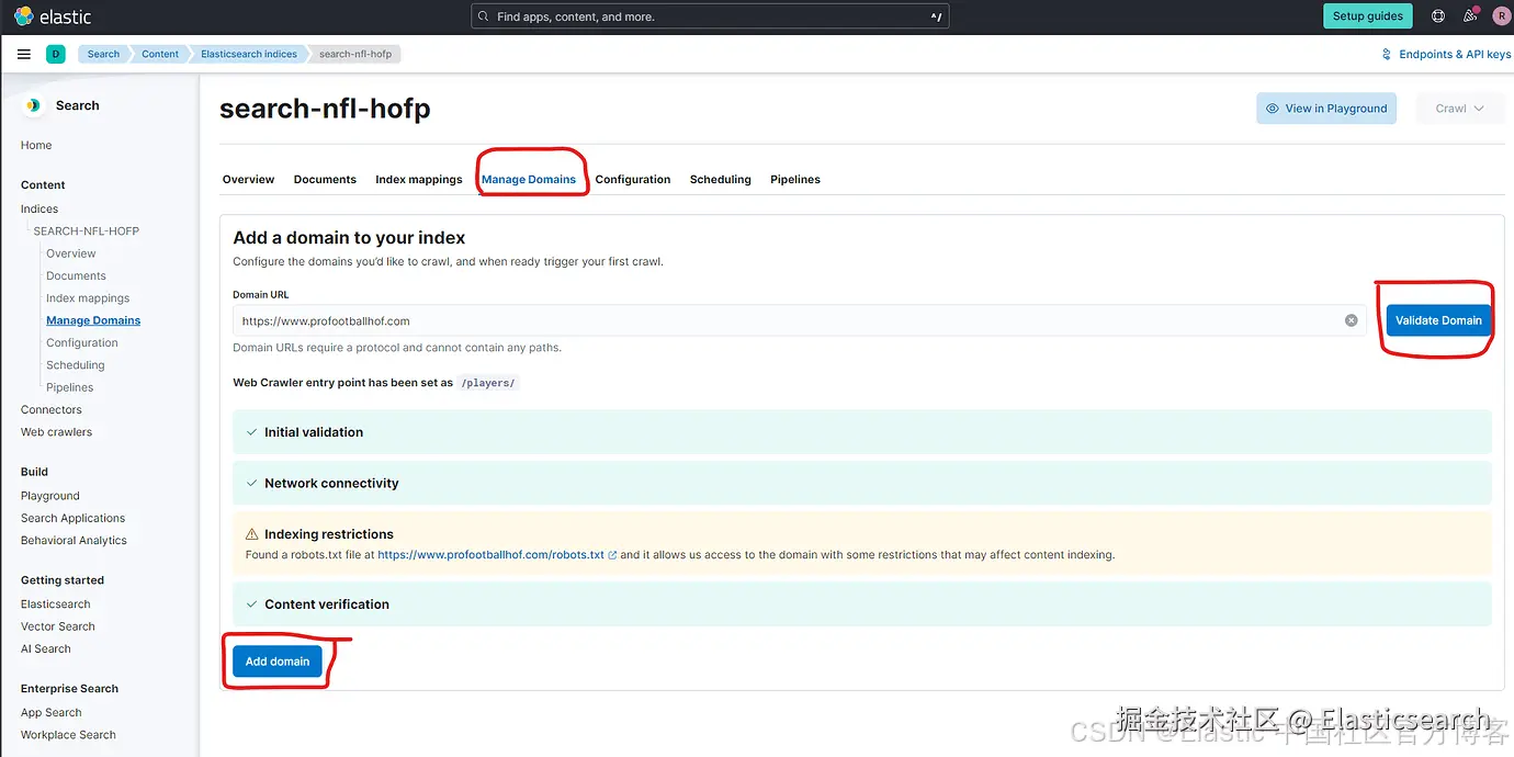 第 7 步:转到 “管理域” 添加要抓取的域。