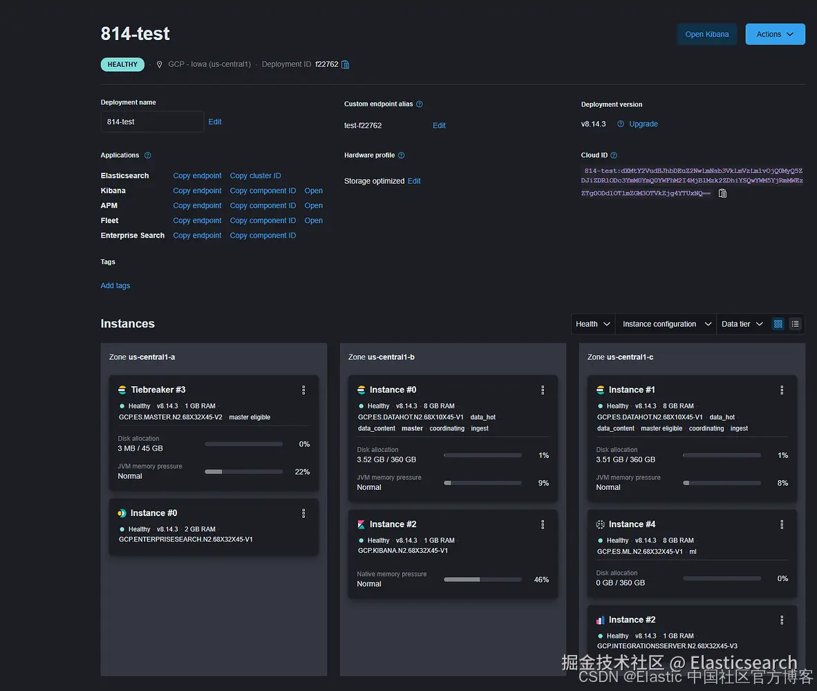 在 ESS 上创建 Elasticsearch 集群 8.17 或更高版本。确保它至少包含 1 个机器学习节点。