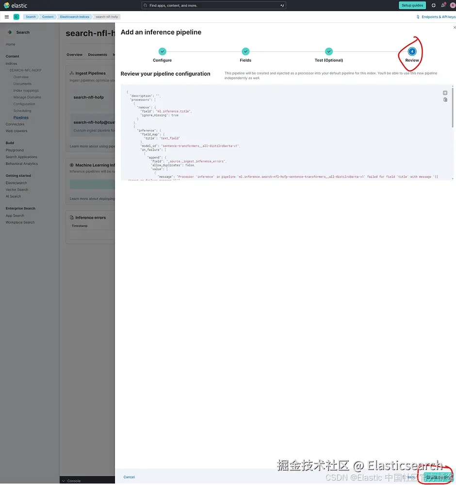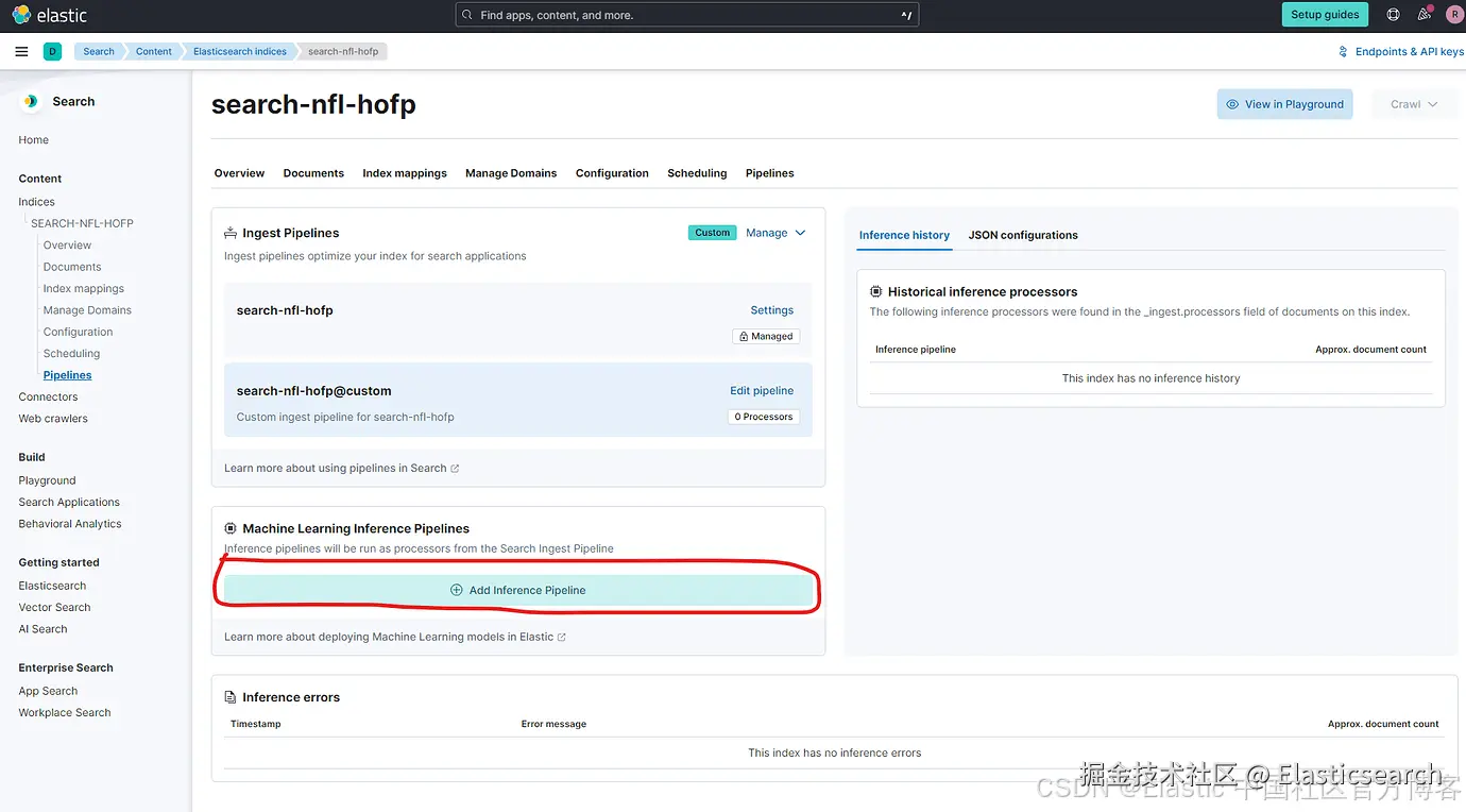 接下来查看 “Machine Learning Inference Pipelines” - 单击 “Add Inference Pipleine”