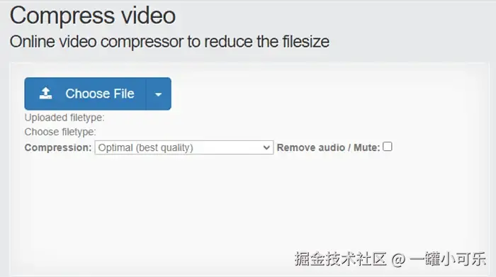 操作步骤: 进入网站 → 点击【choose File】→ 选择压缩类型 → 点击【compression video】。
