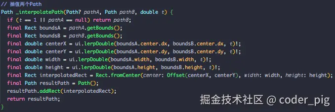 写一个 插值两个Path 的方法 (矩形中心点 + 宽高变化):